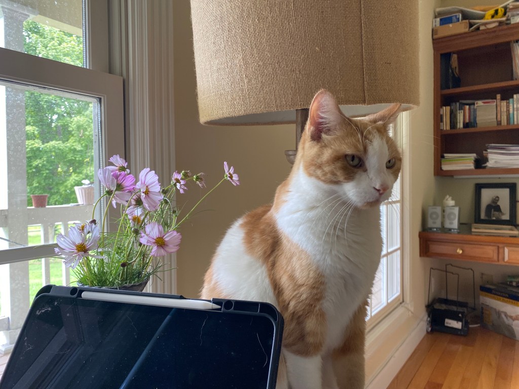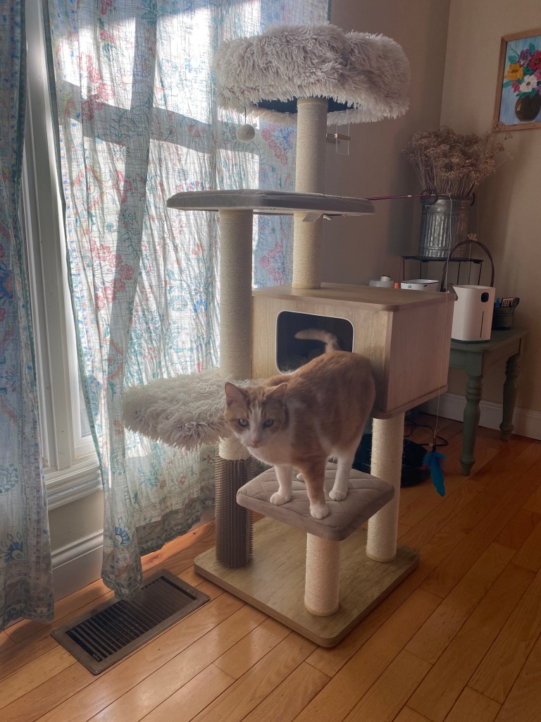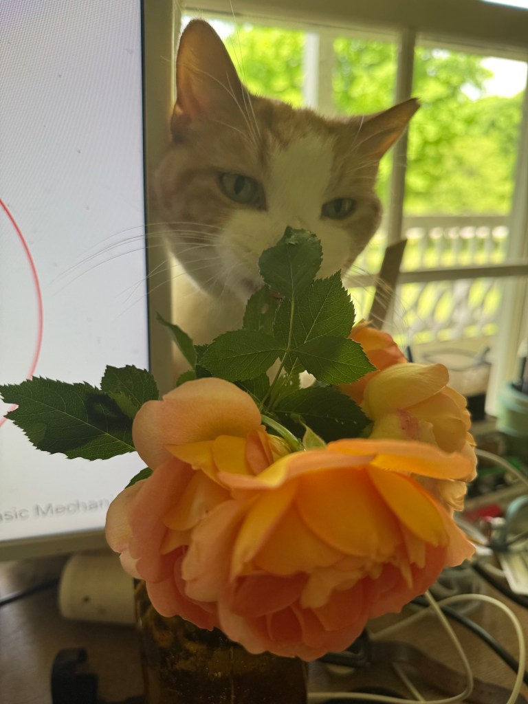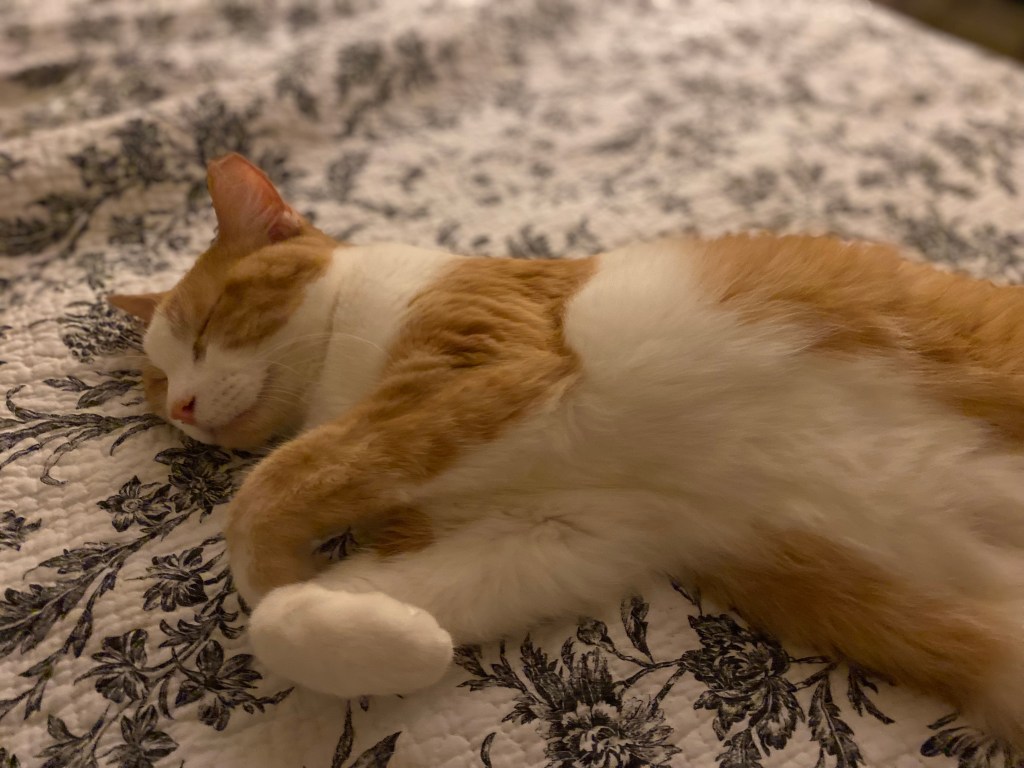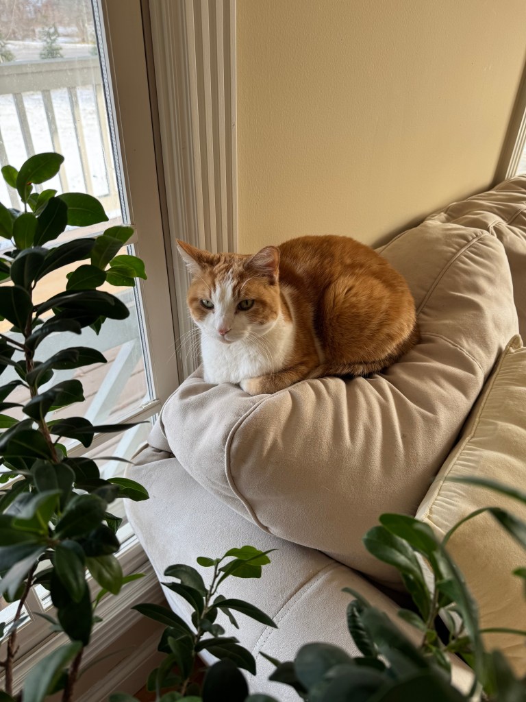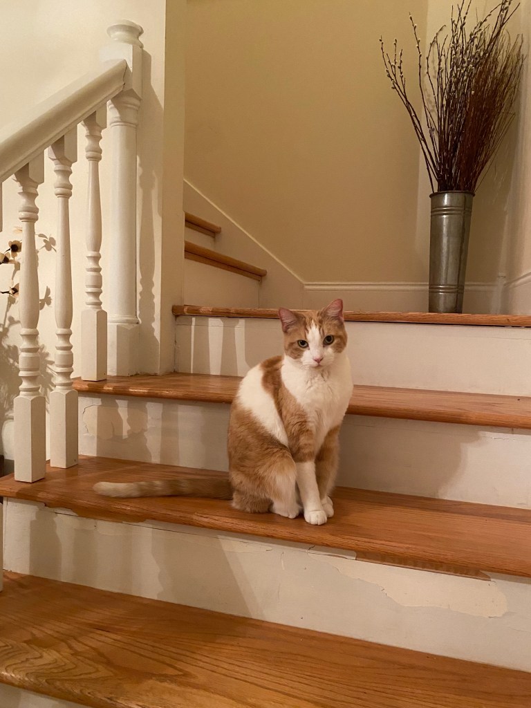 说实在的,直到今天,我都不知道姜糖(Ginger)的真正年龄。她的原主人天一,是我在清华的学生,后来2016年至2022年在普渡攻读博士,又恰好成了我在这里的同门师弟。他那时的女友——如今的夫人——是一位深爱猫咪的女士,正是她最初领养了姜糖。而天一对猫轻微过敏,却仍甘愿忍受那些不便。2021年盛夏,天一的女友回国工作,而他新搬的公寓又不允许饲养宠物。就这样,姜糖被托付给了我。也许所有命运的安排,都是为了成就某种缘分。那一年,天一说她大概八九岁,若这估算无误,如今2025年,她已是十四五岁的高龄猫,正值猫生的奶奶年纪。