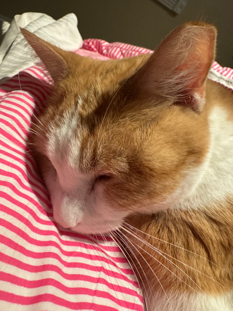 每一只猫,或许都是命运安排送来的礼物。而姜糖,毫无疑问是我生命中最特别的一份。她的到来是偶然,却早已成为我们生活的一部分。她老了,动作也不如以前敏捷,偶尔跳不上高一点的桌子,也常常需要多睡一会儿。但这些并不妨碍她继续成为我们的宝贝,家里的“姜糖奶奶”。