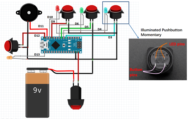 4. one Adafruit 16mm Illuminated Pushbutton – white Momentary